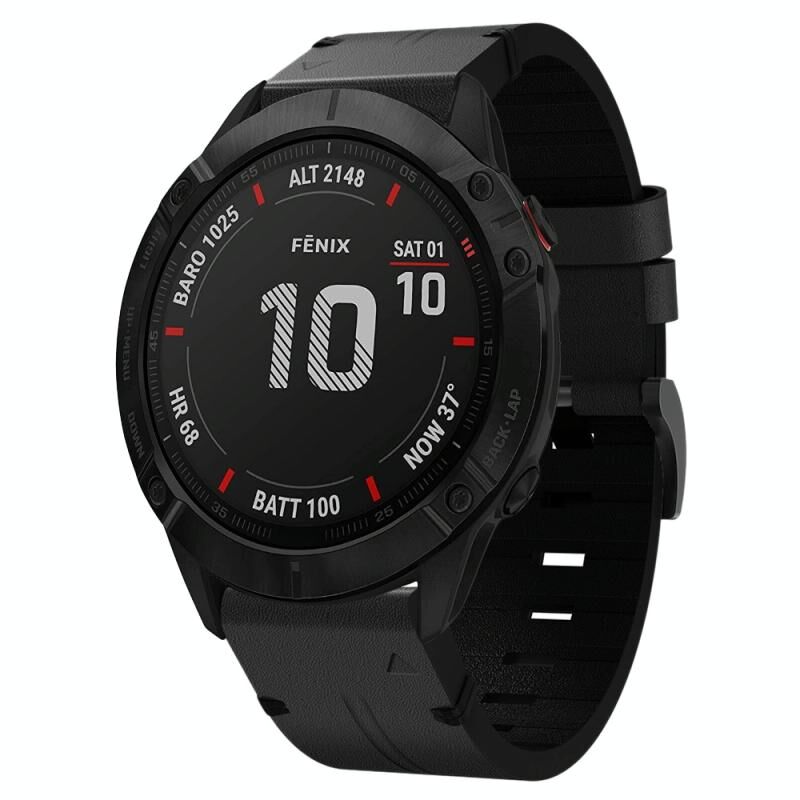 Για Garmin Fenix 6X 26mm δερμάτινη ζώνη ρολογιού με ατσάλινη πόρπη (μαύρο)