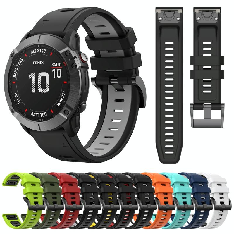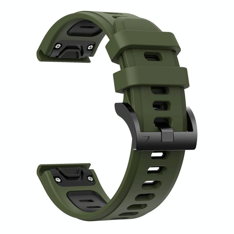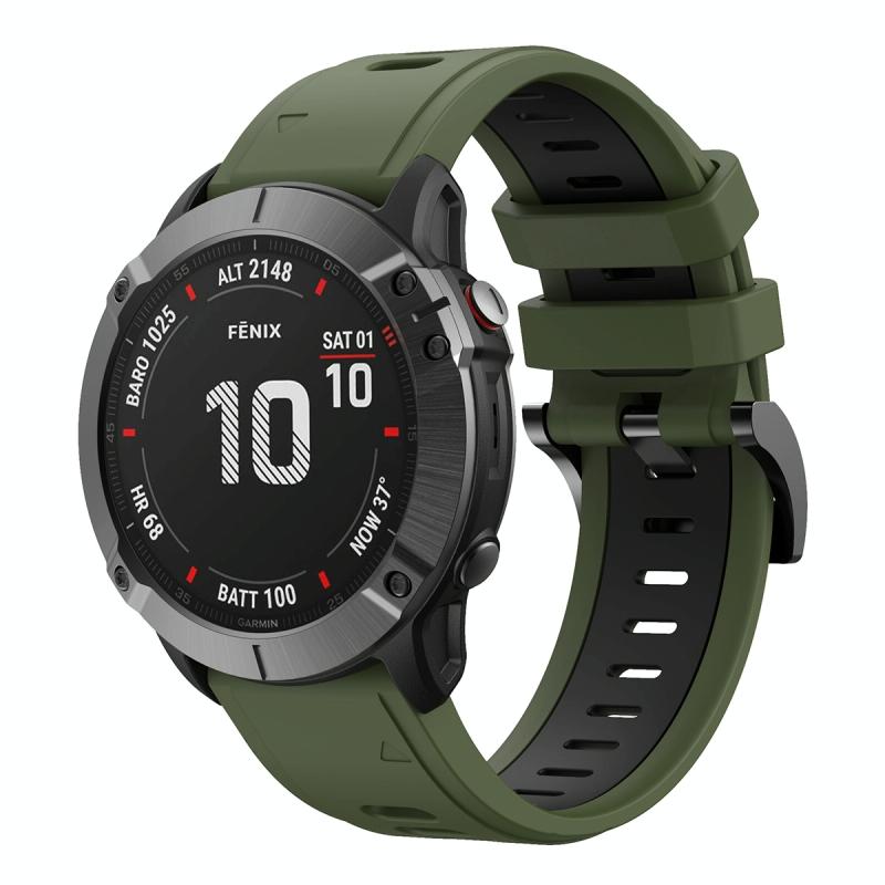 For Garmin Fenix 6X 26mm Two-Color Sports Silicone Watch Band(Army Green + Black)