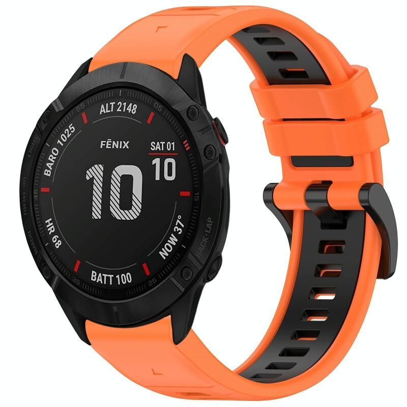 Για Garmin Fenix 6X GPS Αθλητισμός δύο χρωμάτων Γρήγορη απελευθέρωση σιλικόνης ρολόι μπάντα (πορτοκαλί + μαύρο)