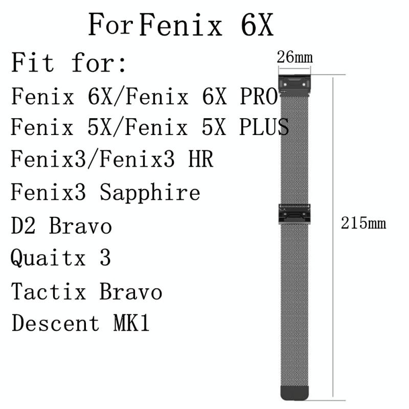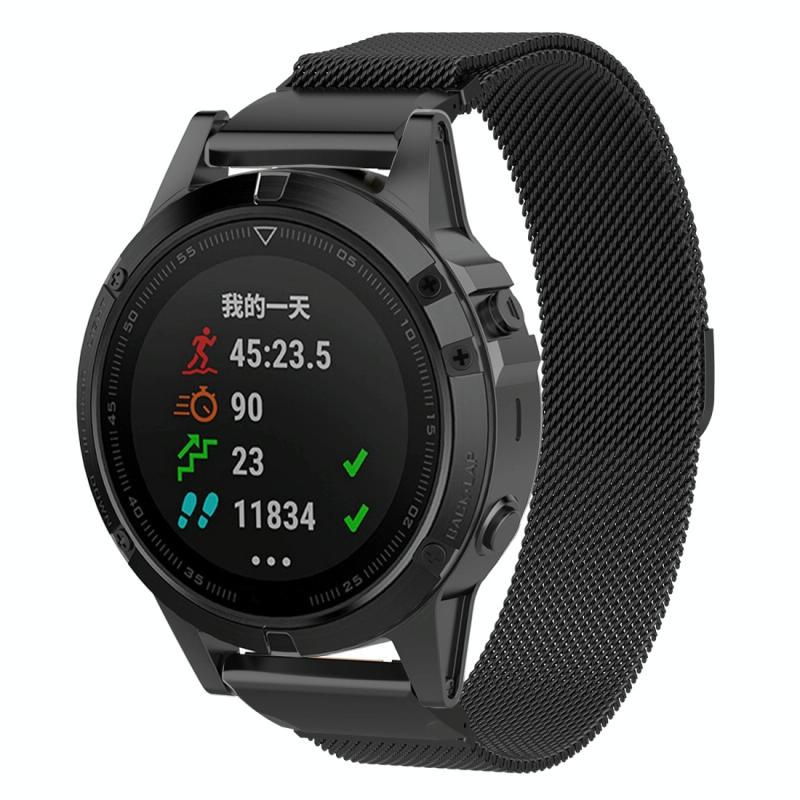 Για Garmin Fenix 6X Μπρασλέ Λουρί Ρολογιού Milanese (Μαύρο)