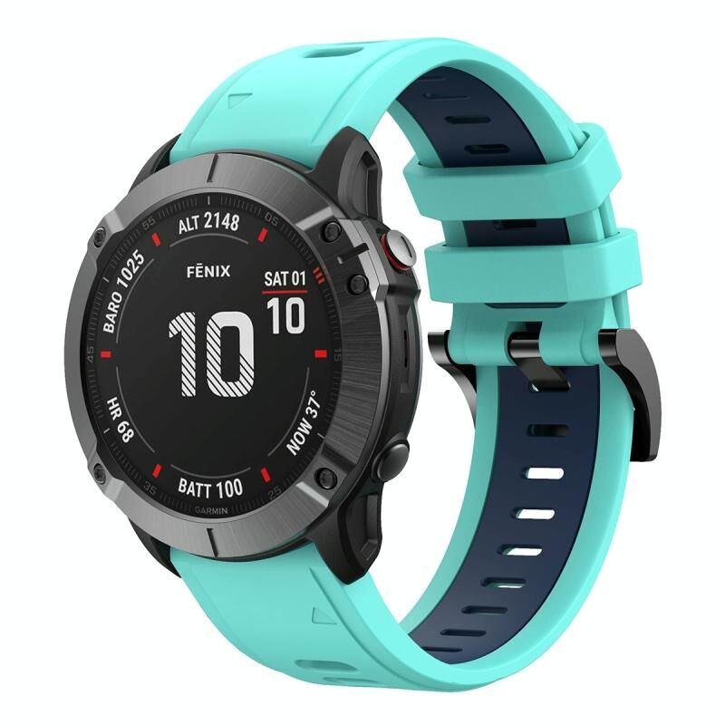Για το Garmin Fenix 6X Pro 26 χιλιοστά δύο χρωμάτων αθλητική ζώνη σιλικόνης ρολόι (πράσινο + μπλε)