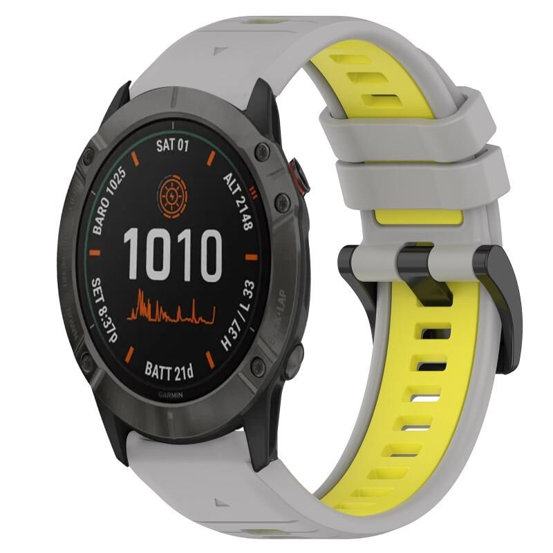 Για Garmin Fenix 6X Pro Sports Δίχρωμο 26mm Σιλικόνης Ρολόι Μπρασελέ (Γκρι+Κίτρινο)
