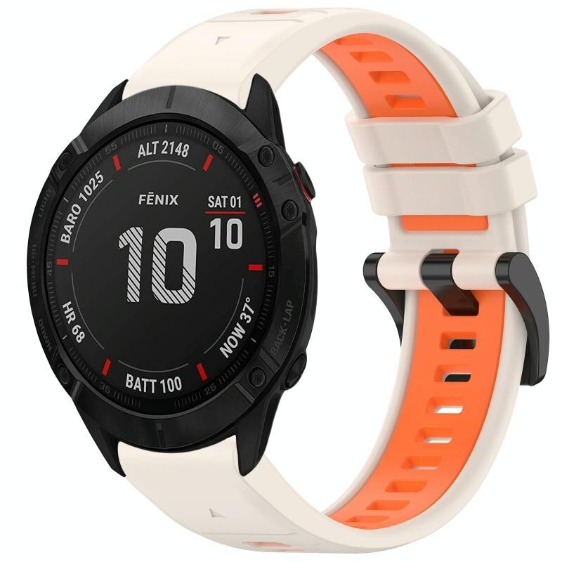 Για Garmin Fenix 6X Pro Αθλητισμός δύο χρωμάτων Γρήγορη απελευθέρωση σιλικόνης ρολόι μπάντα (Starlight + πορτοκαλί)