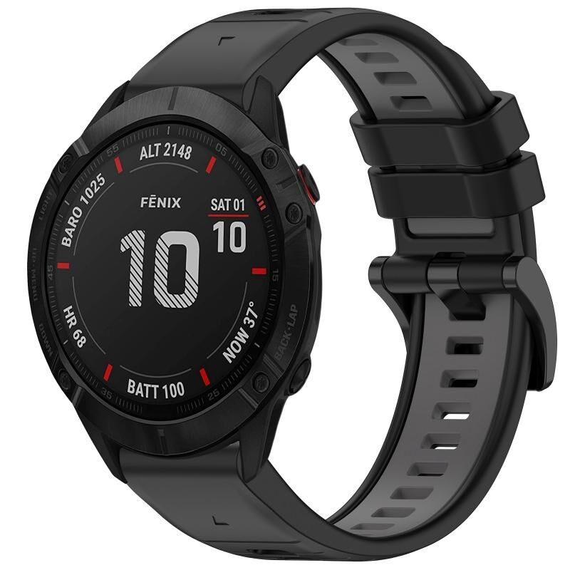 Για Garmin Fenix 6X Sapphire GPS Αθλητισμός δύο χρωμάτων Γρήγορη απελευθέρωση σιλικόνης ρολόι μπάντα (μαύρο + γκρι)