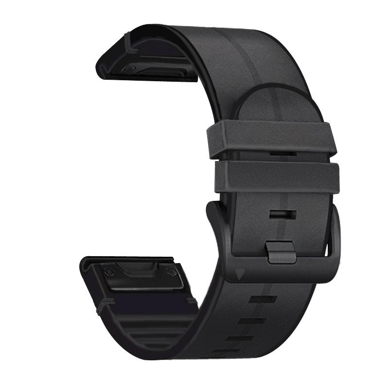 Για Garmin Fenix 6X Λουράκι Ρολογιού Σιλικόνης + Δέρματος με Γρήγορη Απελευθέρωση (Μαύρο)