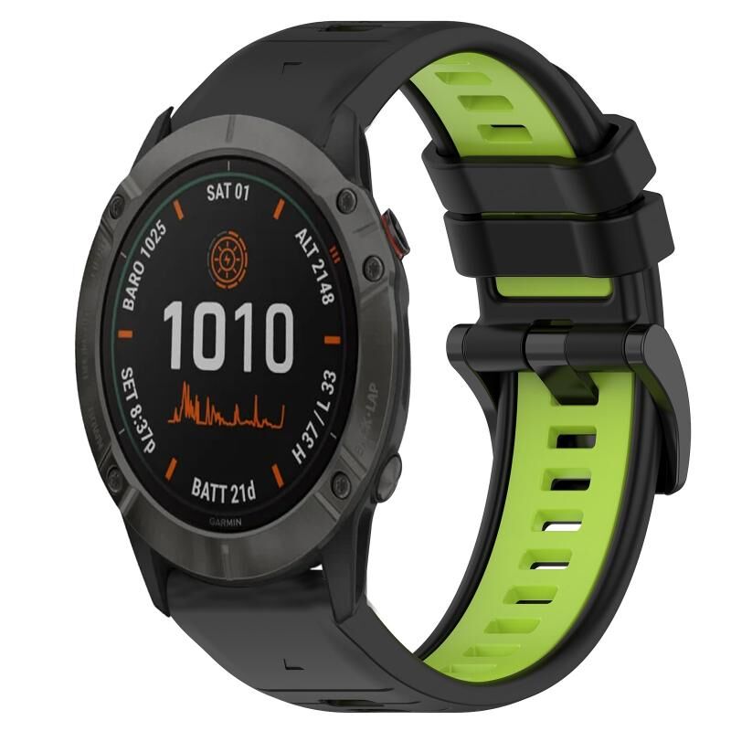 Για Garmin Fenix 6X Αθλητικό Δίχρωμο 26mm Σιλικόνης Ρεμένι Ρολογιού (Μαύρο+Λαχανί)