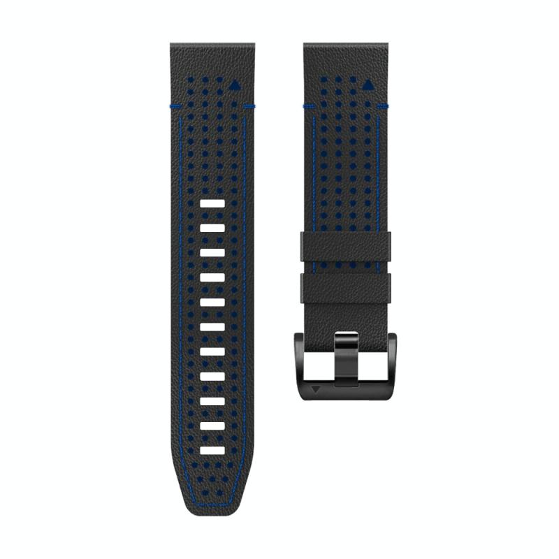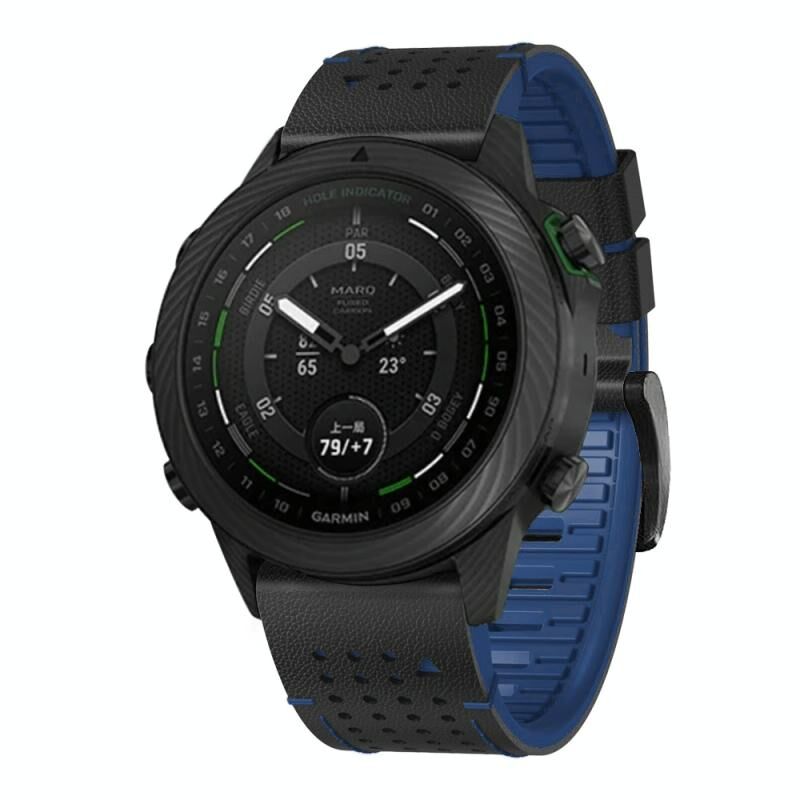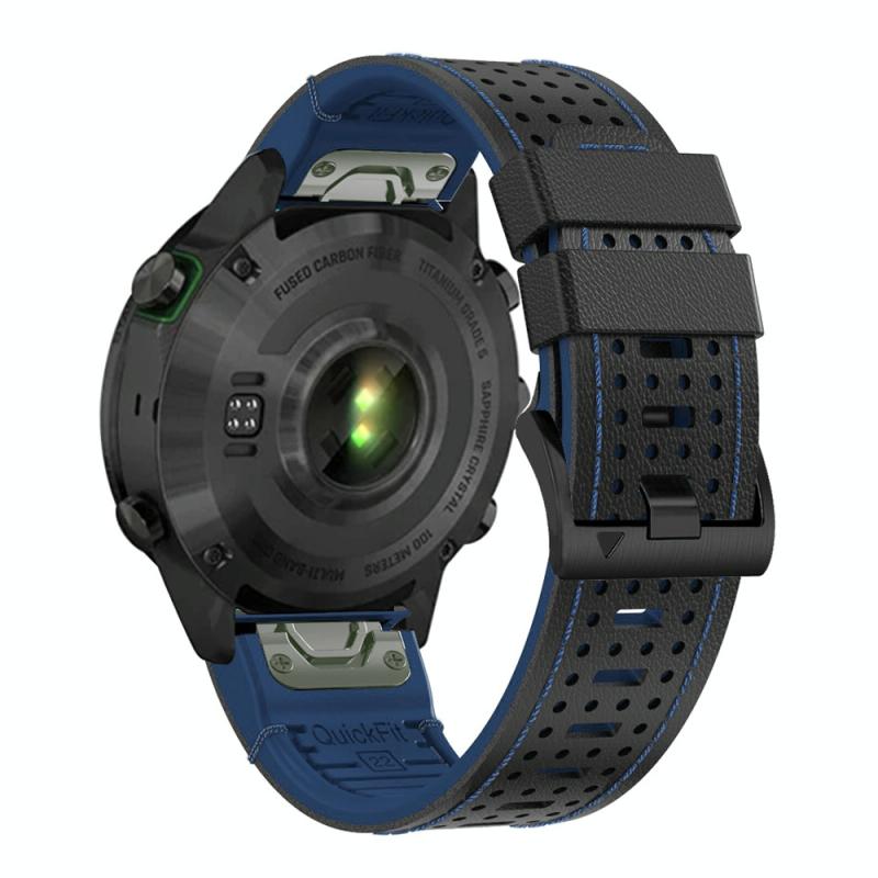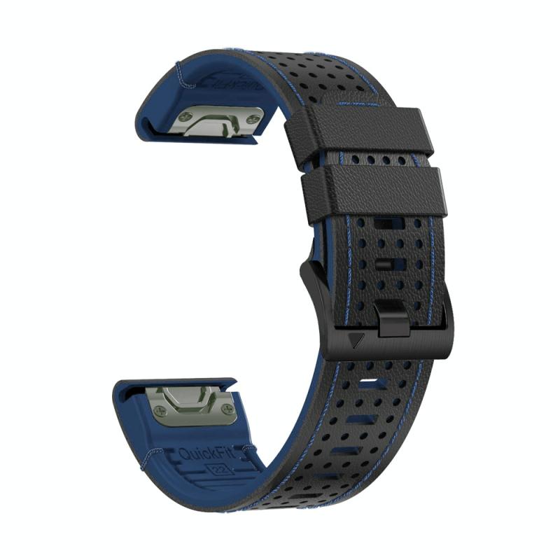For Garmin Fenix 7 22mm Dot Hole Silicone Leather Quick Release Watch Band(Black Blue)