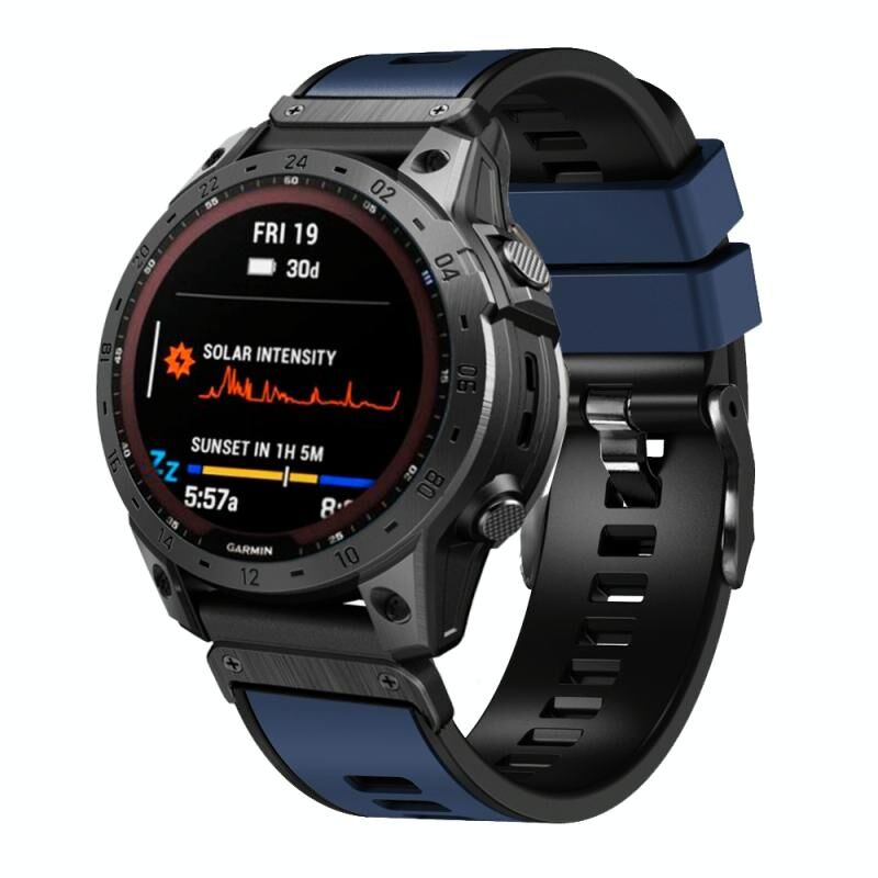 For Garmin Fenix 7 22mm Plain Weave Two-Color Quick Release Silicone Watch Band(Dark Blue)