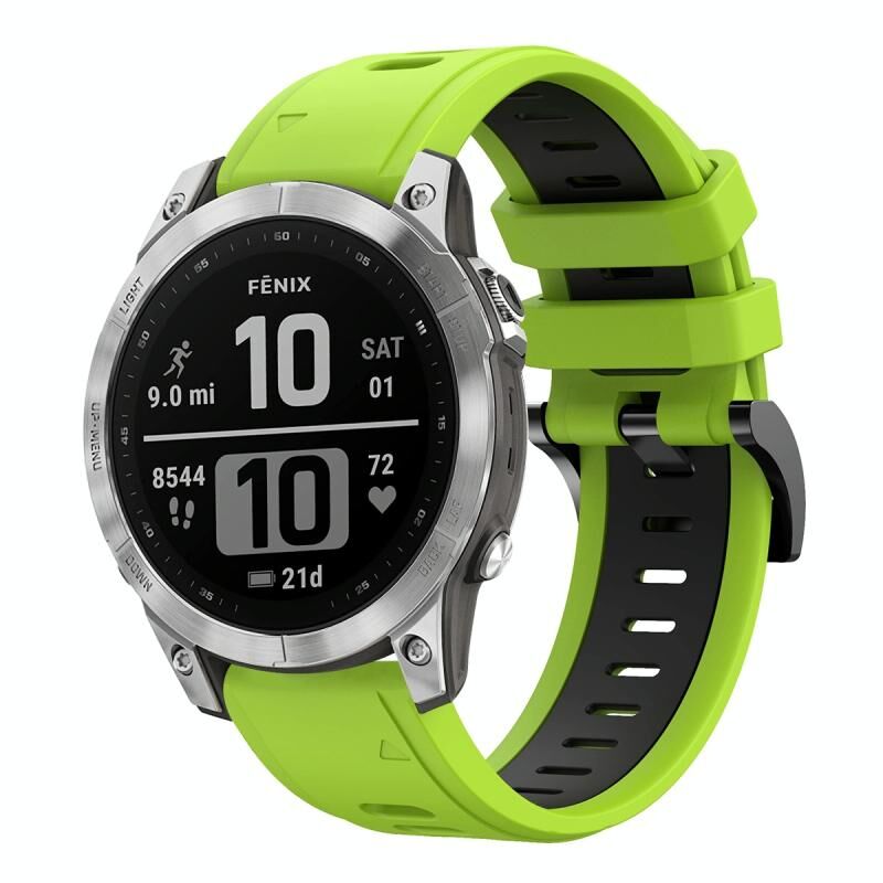 Για το Garmin Fenix 7 22 χιλιοστά δύο χρωμάτων αθλητική ζώνη σιλικόνης ρολόι (Lime Green + μαύρο)