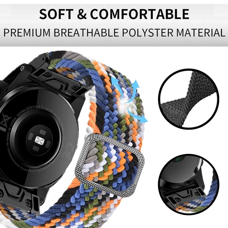 Για Garmin Fenix 7 Ρυθμιζόμενο Νάιλον Πλεγμένο Ελαστικό Λουράκι Ρολογιού (Μαύρο Λευκό)
