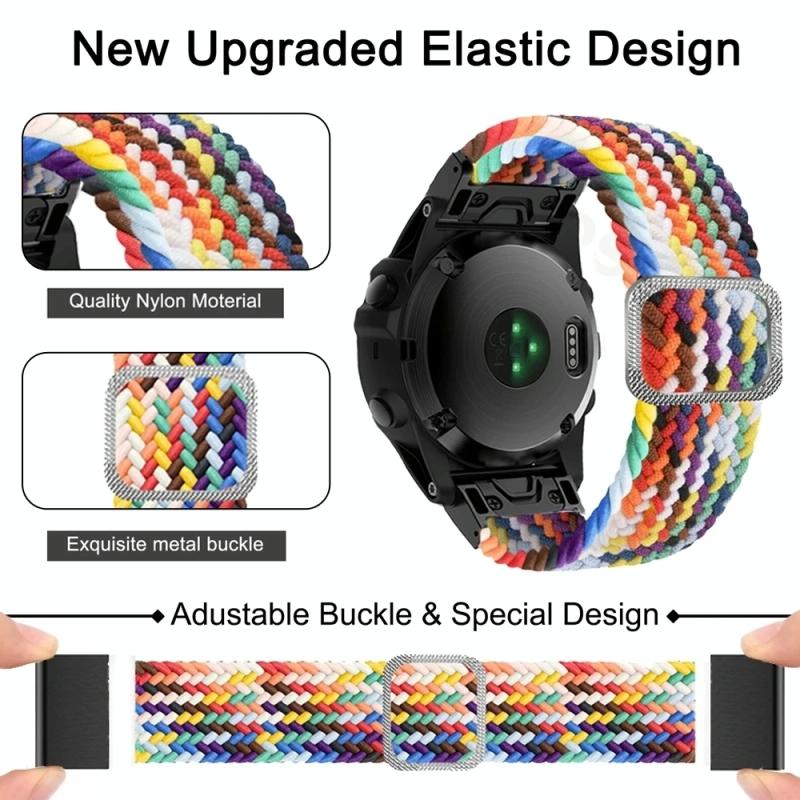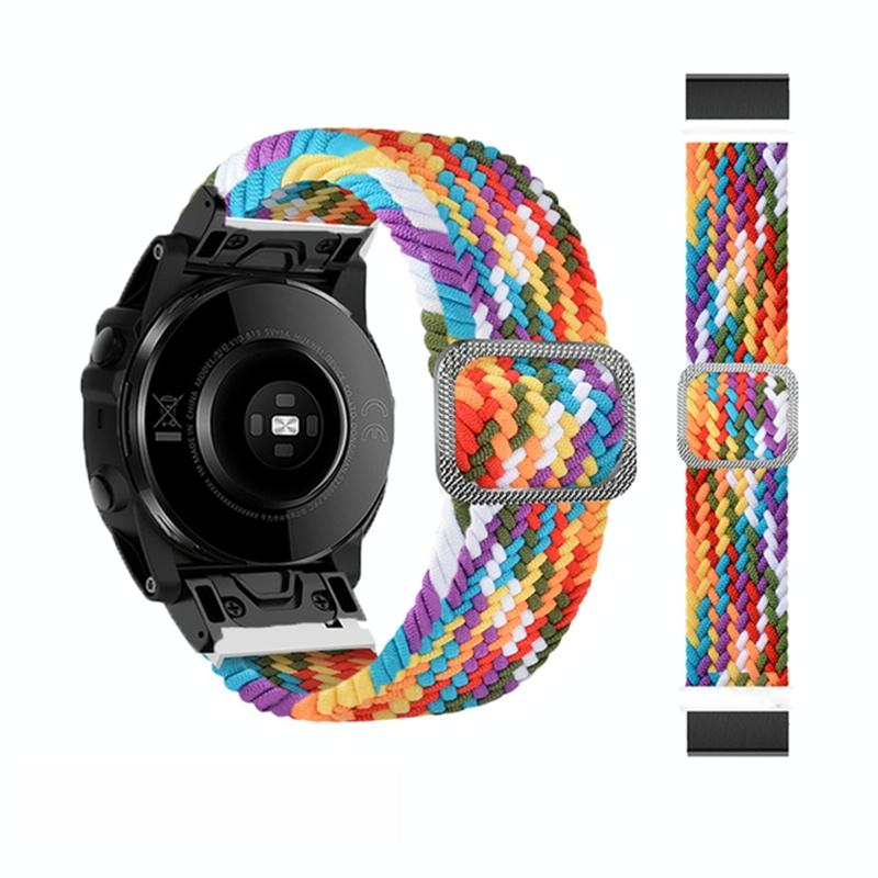 Για Garmin Fenix 7 Ρυθμιζόμενο Νάιλον Πλεγμένο Ελαστικό Λουράκι Ρολογιού (Rainbow 02)