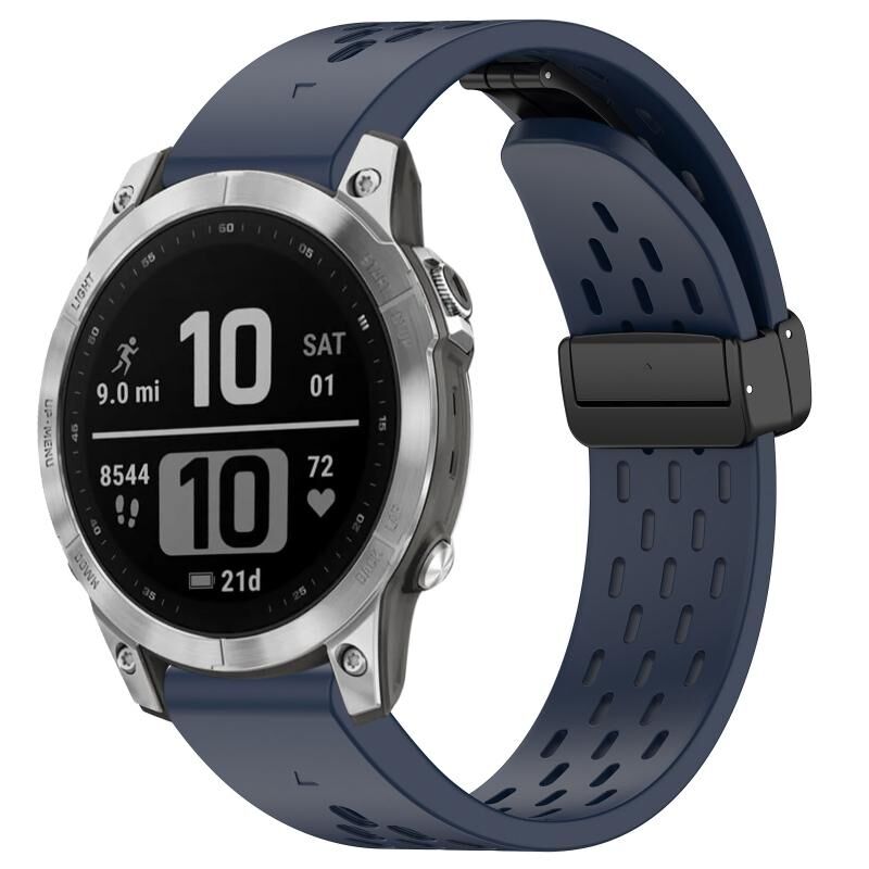Για Garmin Fenix 7 / Fenix 7 Pro 22 χιλιοστά οπές μαγνητική πτυσσόμενη πόρπη σιλικόνης ρολόι μπάντα (Μεσάνυχτα)