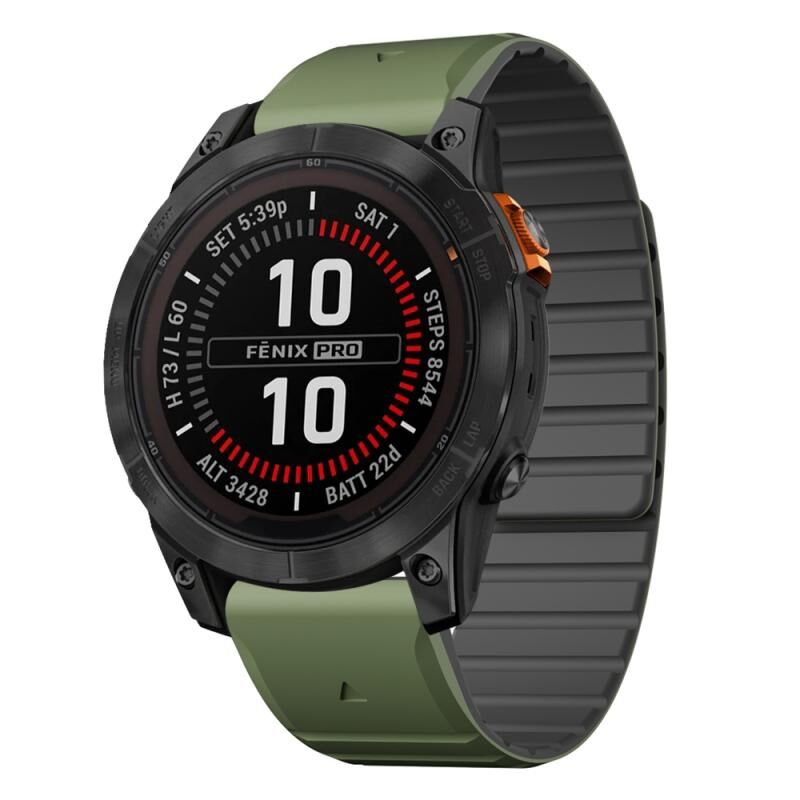 Για Garmin Fenix 7 / Fenix 7 Pro Διπλό χρώμα μαγνητική γρήγορη απελευθέρωση 22 χιλιοστά σιλικόνης ρολόι μπάντα (πράσινο + μαύρο)