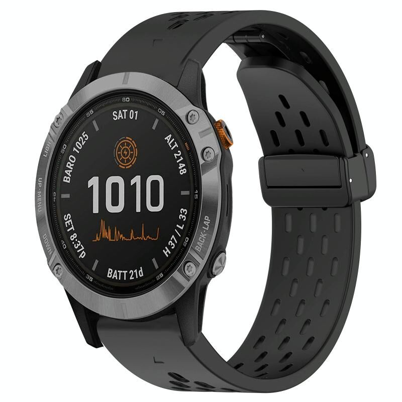 Λουράκι Garmin Fenix 7 22mm Σιλικόνης με Αγκράφα Διπλώματος (Μαύρο)