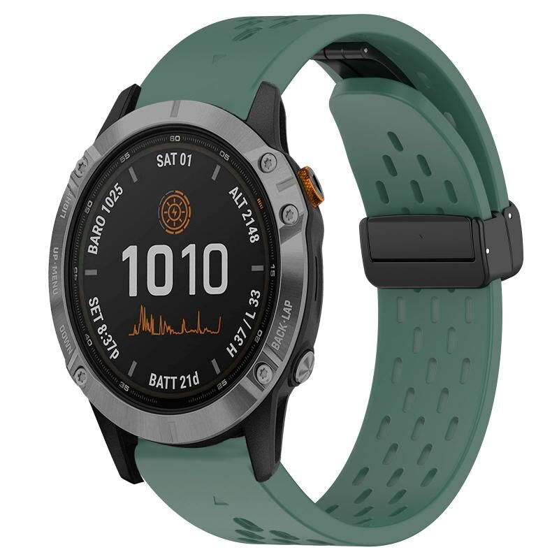 Λουράκι Garmin Fenix 7 22mm Σιλικόνης με Αγκράφα Διπλώματος (Σκούρο Πράσινο)