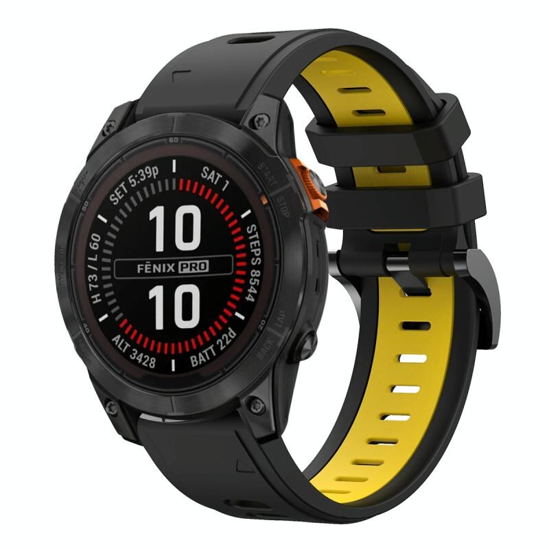 Για Garmin Fenix 7 Pro 47mm Αθλητισμός Δύο χρώματα 22 χιλιοστά σιλικόνης ρολόι μπάντα (μαύρο + κίτρινο)