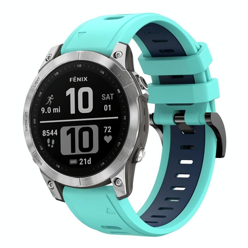Για το Garmin Fenix 7 Pro 47mm Αθλητικό ρολόι σιλικόνης δύο χρωμάτων (πράσινο + μπλε)