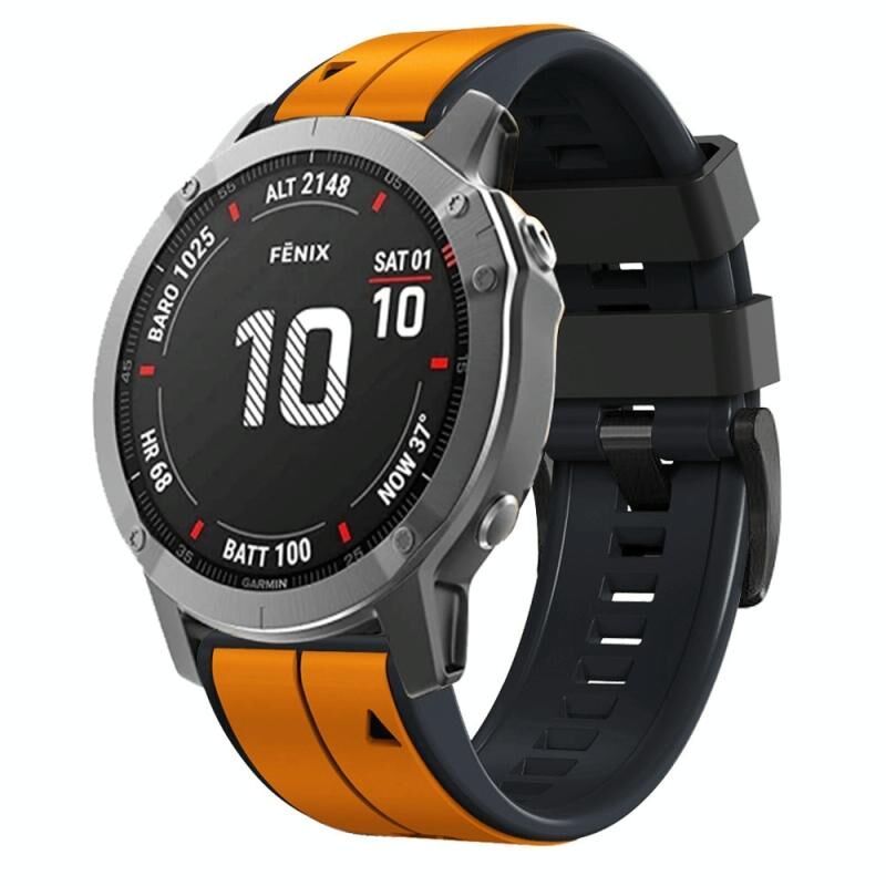 Για το Garmin Fenix 7 Pro 47mm Αθλητική ζώνη ρολογιού σιλικόνης δύο χρωμάτων (πορτοκαλί+μαύρο)