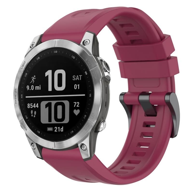 Για Garmin Fenix 7 Pro Αμιγές χρώμα μαύρο πόρπη σιλικόνης γρήγορη απελευθέρωση ρολόι μπάντα (κόκκινο κρασί)