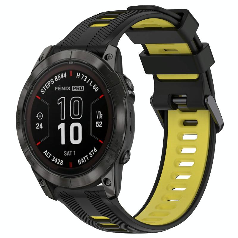 Για Garmin Fenix 7 Pro Αθλητικό Διχρωμικό Λουράκι Σιλικόνης (Μαύρο+Κίτρινο)