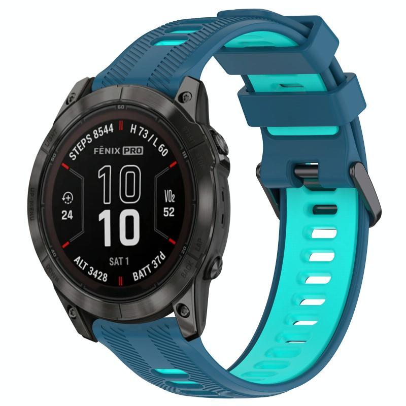 Για Garmin Fenix 7 Pro Αθλητικό Διχρωμικό Λουράκι Σιλικόνης (Μπλε+Τιρκουάζ)
