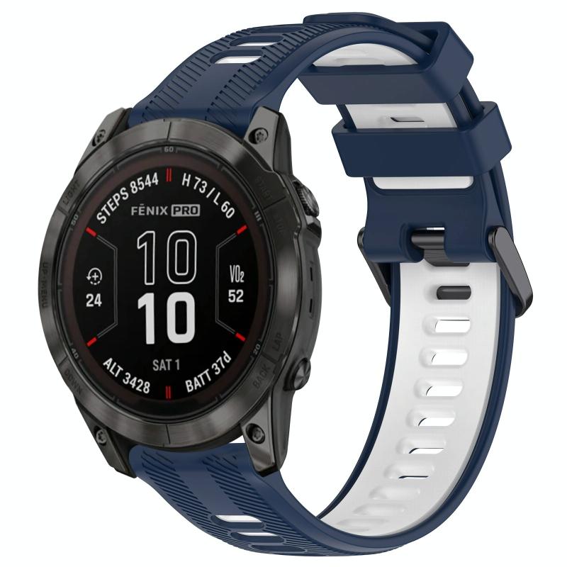 Για Garmin Fenix 7 Pro Αθλητικό Διχρωμικό Λουράκι Σιλικόνης (Μπλε Μεσονυχτί+Λευκό)