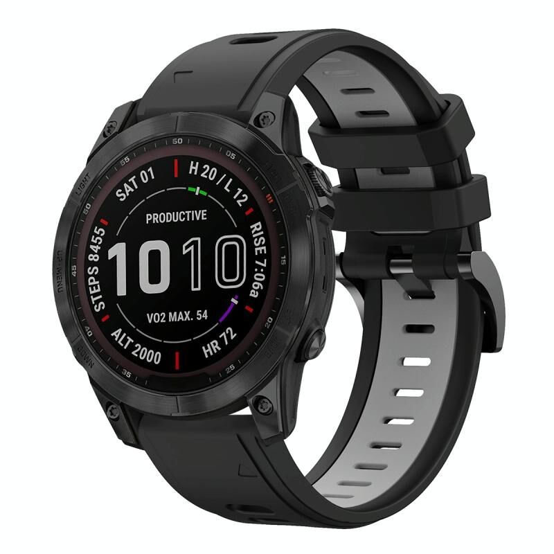 Για το Garmin Fenix 7 Sapphire Solar 22mm δύο χρωμάτων αθλητική ζώνη σιλικόνης ρολόι (μαύρο + γκρι)