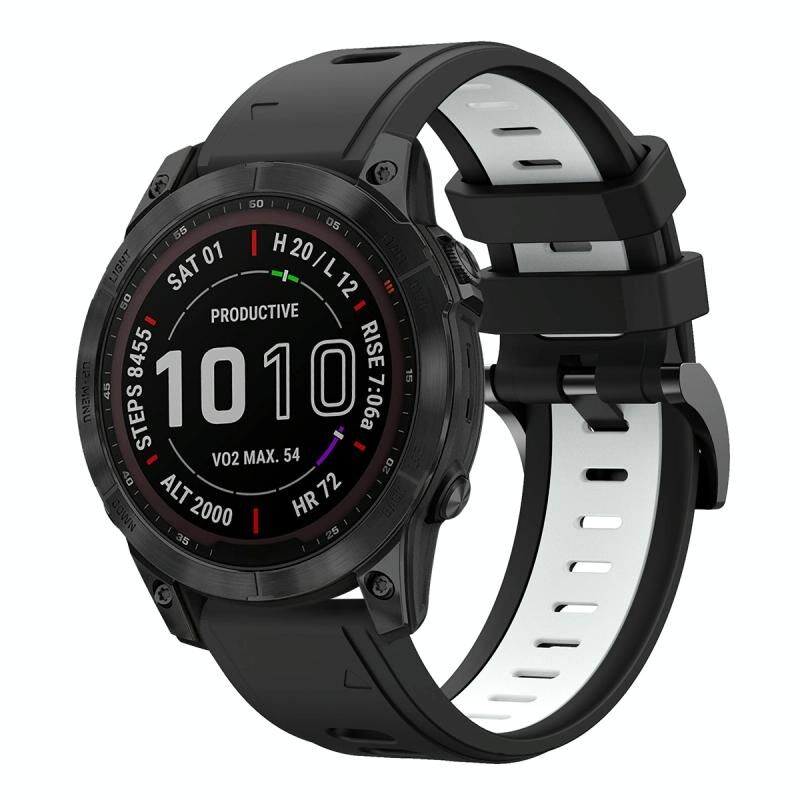 Για το Garmin Fenix 7 Sapphire Solar 22mm δύο χρωμάτων αθλητική ζώνη σιλικόνης ρολόι (μαύρο + λευκό)