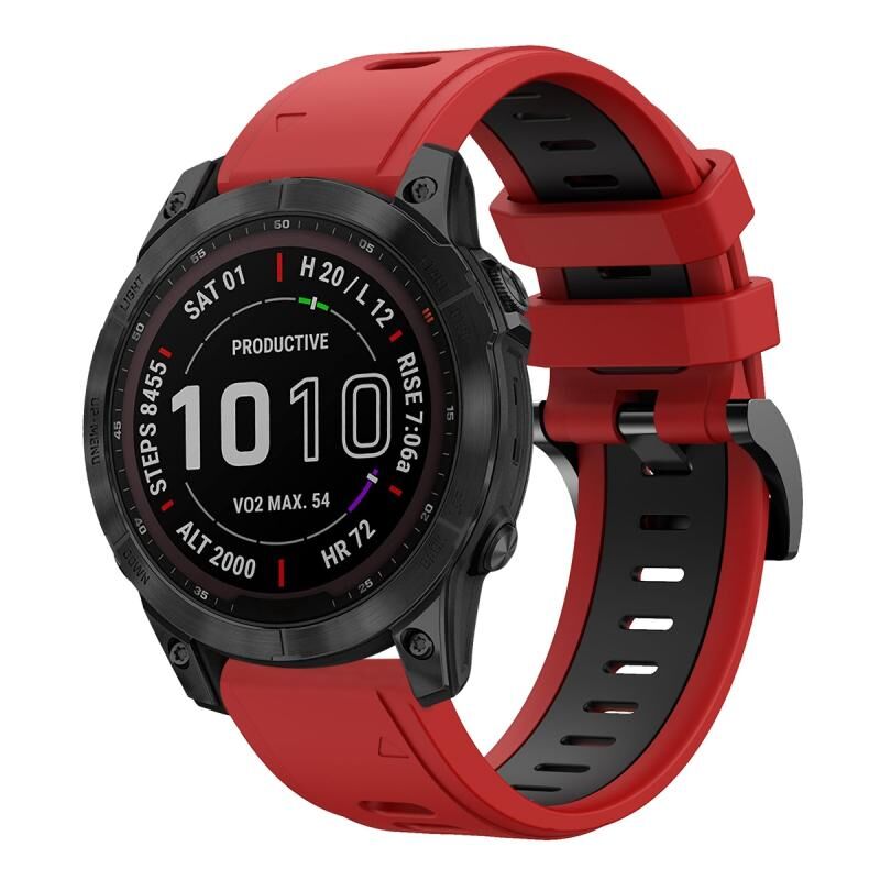 Για Garmin Fenix 7 Sapphire Solar 22mm δύο χρωμάτων αθλητική ζώνη σιλικόνης ρολόι (κόκκινο + μαύρο)