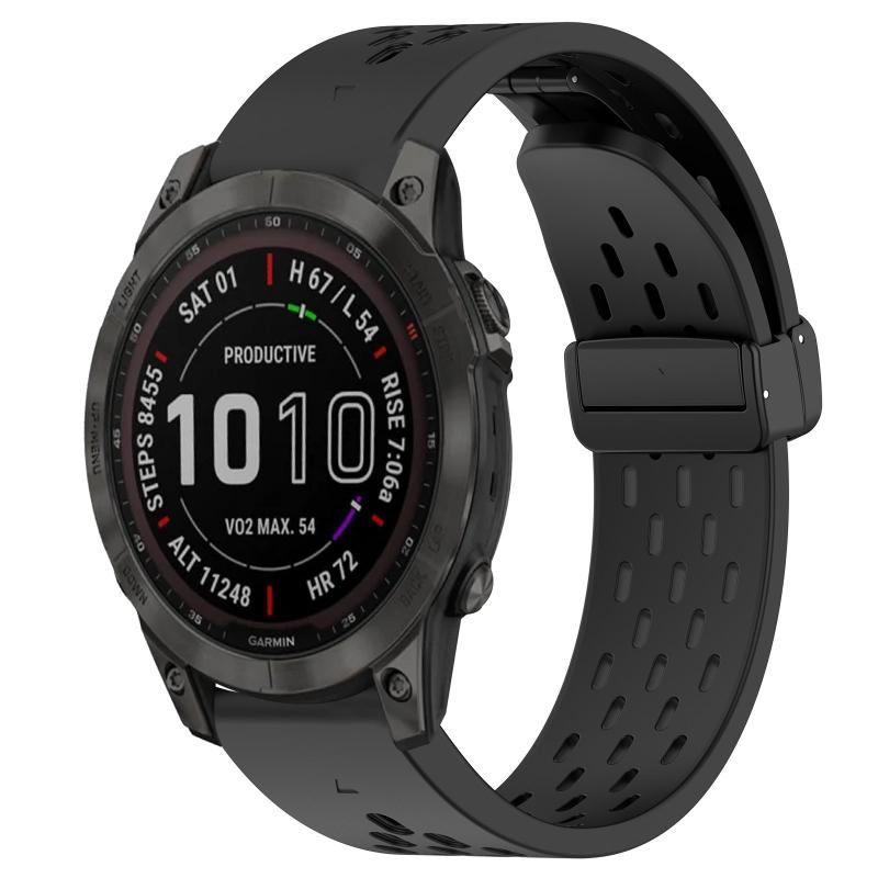 Για Garmin Fenix 7 Sapphire Solar Λουράκι Σιλικόνης 22mm με Αγκράφα Διπλώματος (Μαύρο)
