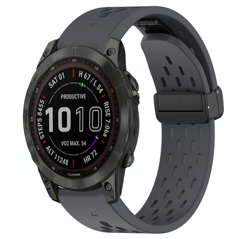 Για Garmin Fenix 7 Sapphire Solar Λουράκι Σιλικόνης 22mm με Αγκράφα Διπλώματος (Σκούρο Γκρι)