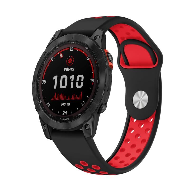 Για Garmin Fenix 7 Solar 22mm αθλητική αναπνεύσιμη ζώνη ρολογιού σιλικόνης (μαύρο + κόκκινο)