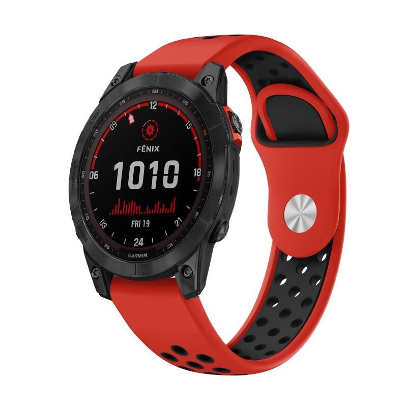 Για Garmin Fenix 7 Solar 22mm αθλητική αναπνεύσιμη ζώνη σιλικόνης ρολόι (κόκκινο + μαύρο)