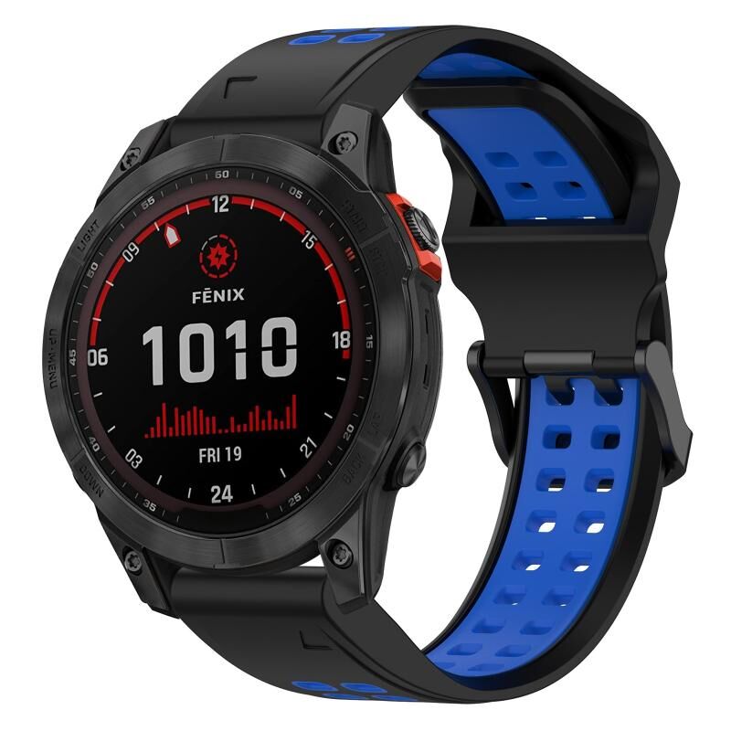 Ανταλλακτικό λουράκι σιλικόνης 22mm δύο χρωμάτων (μαύρο+μπλε) με αναστρέψιμη αγκράφα για Garmin Fenix 7 Solar