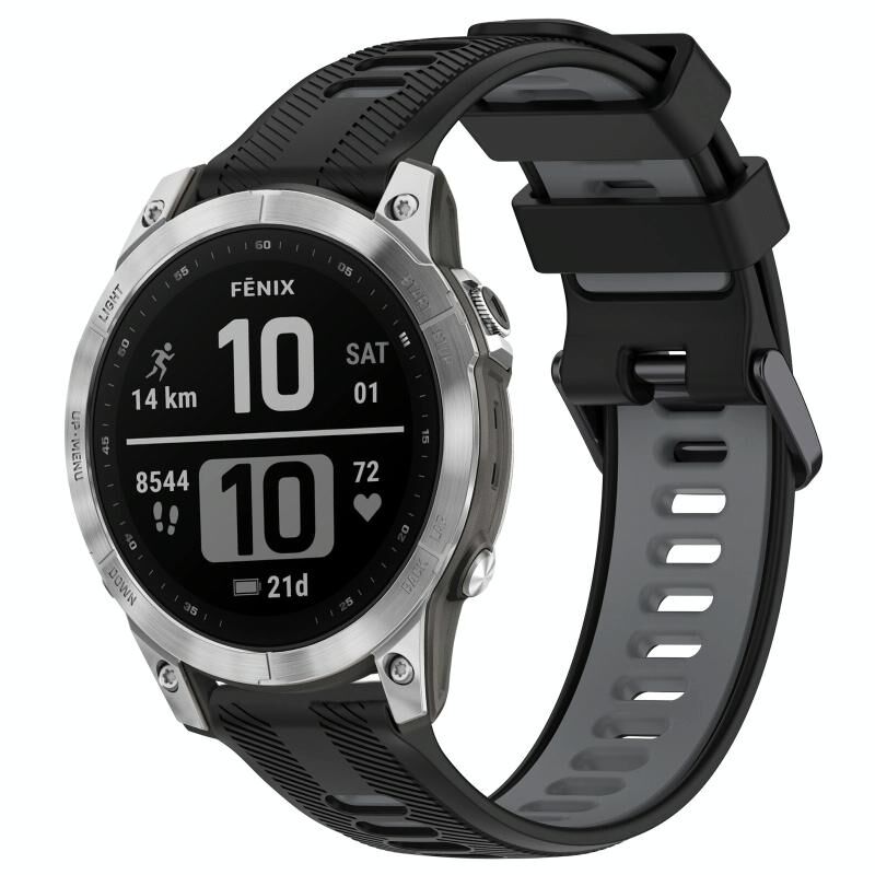 Για το Garmin Fenix 7 Αθλητικό ρολόι σιλικόνης δύο χρωμάτων (μαύρο + γκρι)