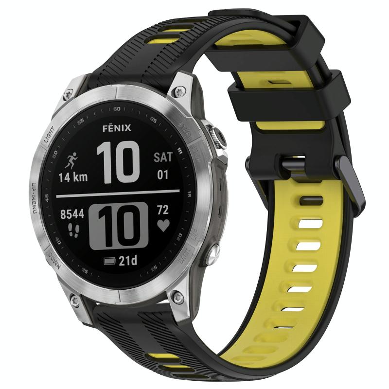 Λουράκι Garmin Fenix 7 Σπορ Δύο Χρωμάτων Σιλικόνης (Μαύρο+Κίτρινο)