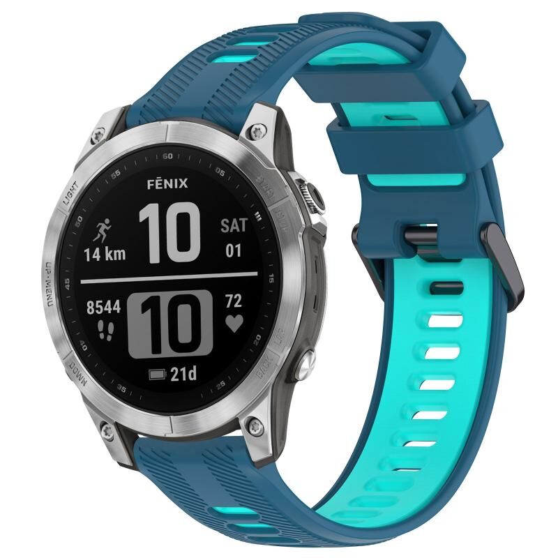 Για Garmin Fenix 7 Αθλητισμός Δύο-χρώμα σιλικόνης ρολόι μπάντα (μπλε + Teal)