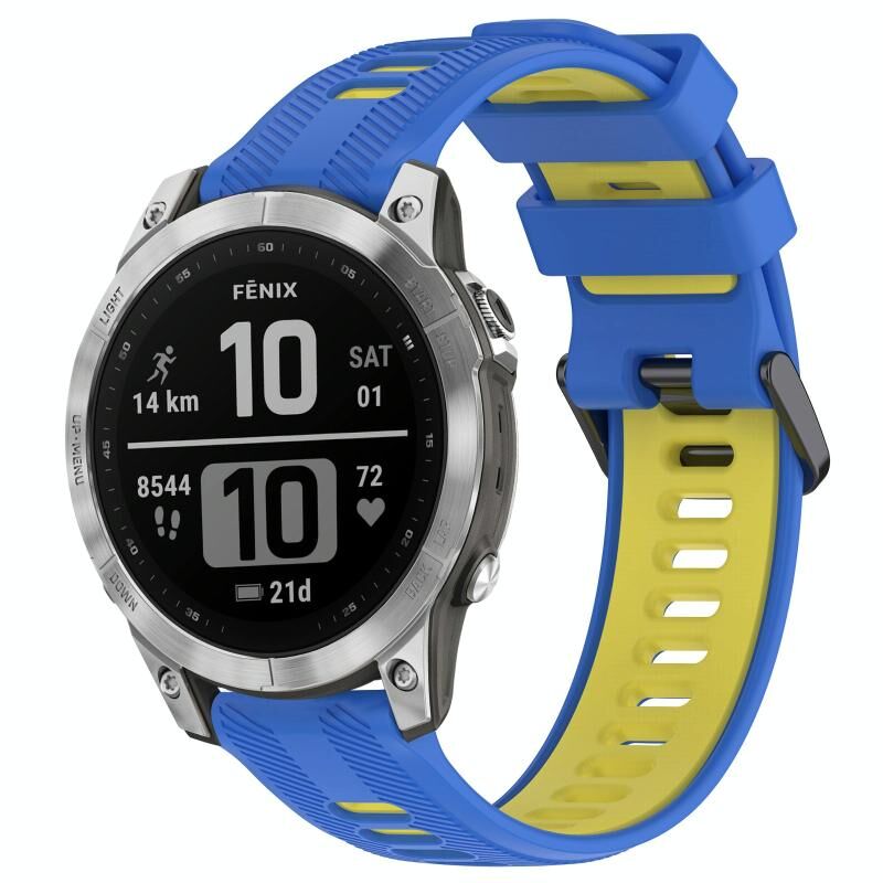 Για το Garmin Fenix 7 Αθλητικό ρολόι σιλικόνης δύο χρωμάτων (μπλε + κίτρινο)