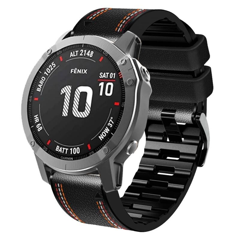 For Garmin Fenix 7 Tricolor Stitching Silicone Leather Watch Band(Black)