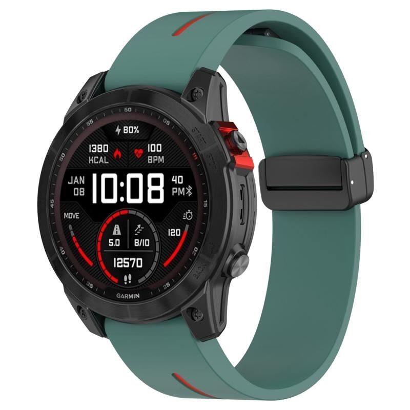Για Garmin Fenix 7 Δύο χρώμα μαγνητικό πτυσσόμενο μαύρο πόρπη σιλικόνης ρολόι μπάντα ρολογιού (Olive Green Red)
