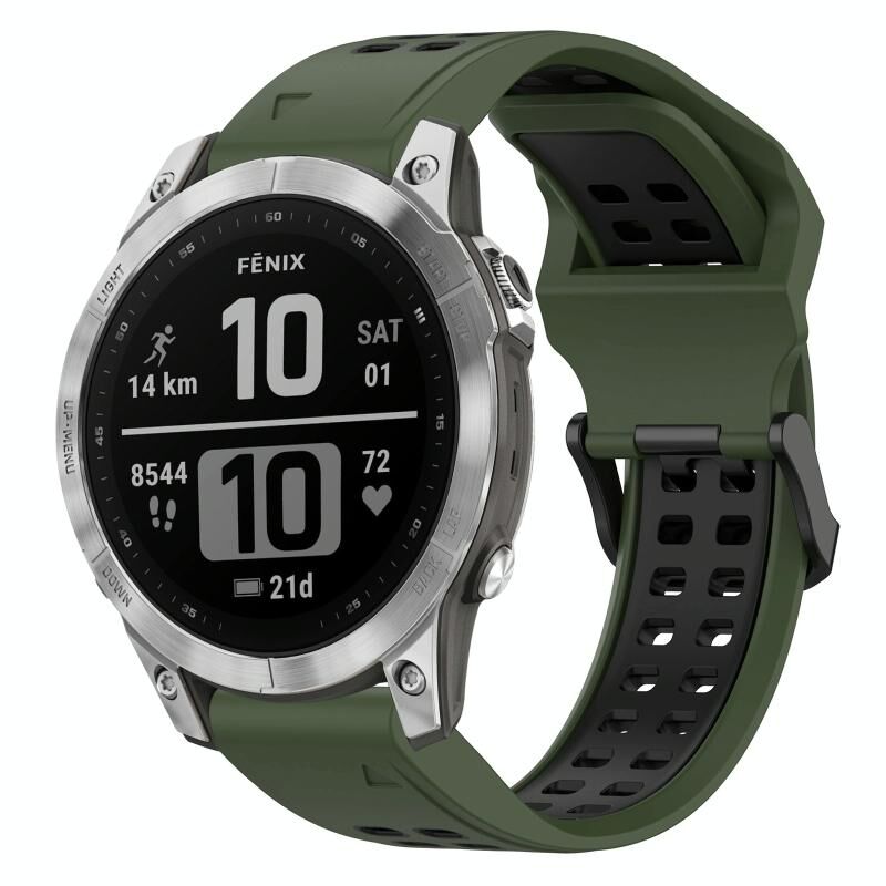 Ανταλλακτικό λουράκι σιλικόνης 22mm διπλού χρώματος (στρατιωτικό πράσινο+μαύρο) με αναστρέψιμη αγκράφα για Garmin Fenix 7