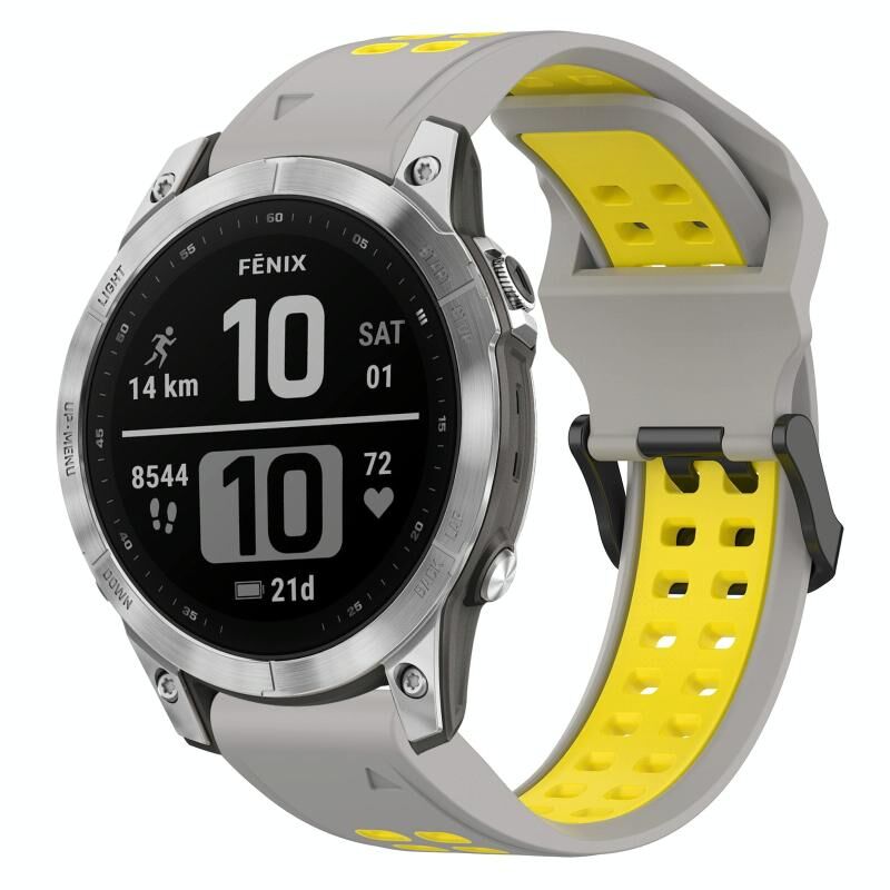 Ανταλλακτικό λουράκι σιλικόνης 22mm δύο χρωμάτων (Γκρι+Κίτρινο) με αναστρέψιμη αγκράφα για Garmin Fenix 7