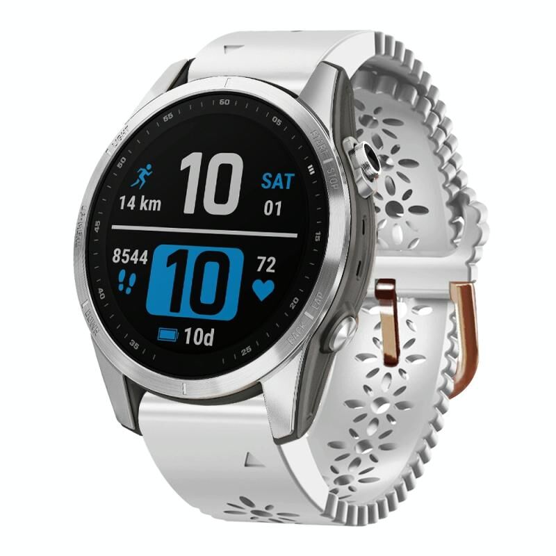 Για το Garmin Fenix 7S 20 χιλιοστά γυναικεία ζώνη σιλικόνης ρολόι με δαντέλα γροθιά (λευκό)