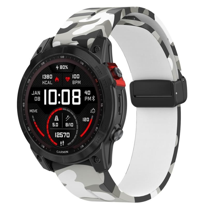 For Garmin Fenix 7S Magnetic Folding Black Buckle Color Printed Silicone Watch Band(Camouflage White)