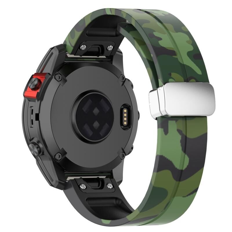 For Garmin Fenix 7S Magnetic Folding Silver Buckle Color Printed Silicone Watch Band(Camouflage Green)