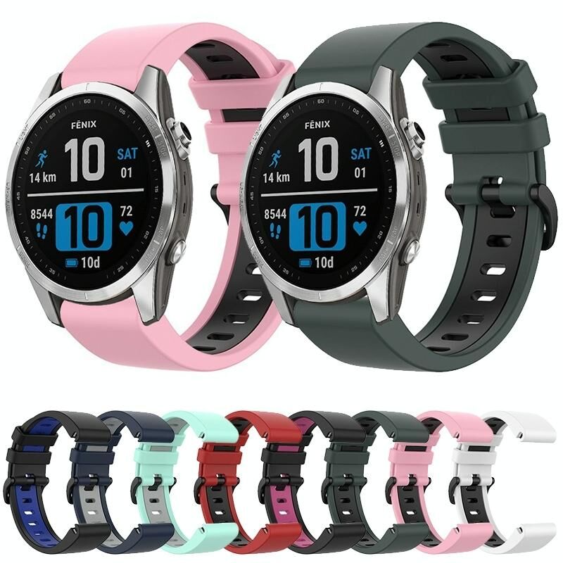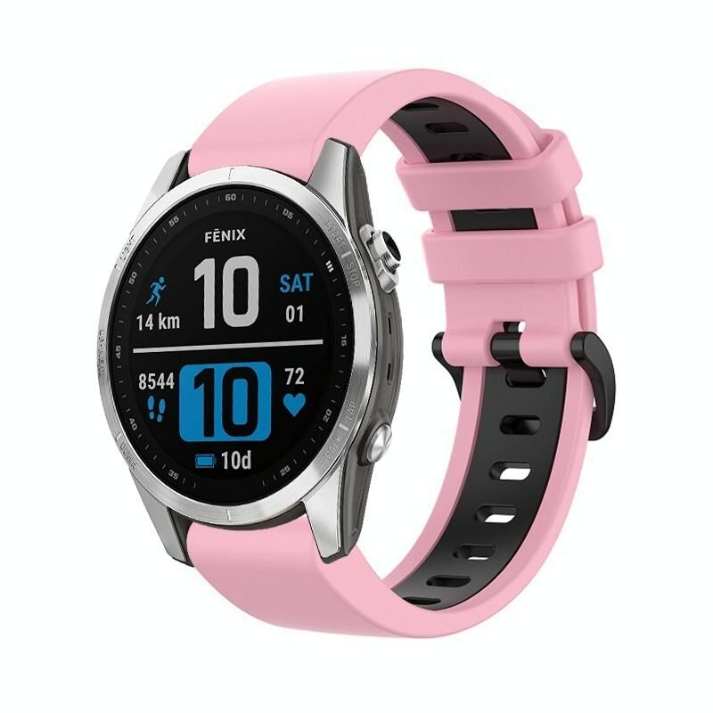 Για το Garmin Fenix 7S Pro 42mm Αθλητικό ρολόι σιλικόνης δύο χρωμάτων (ροζ+μαύρο)