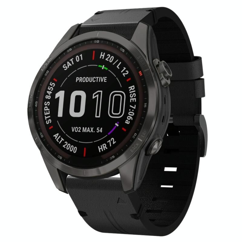 Για Garmin Fenix 7S Sapphire Solar 20mm δερμάτινη ατσάλινη ζώνη ρολογιού με αγκράφα (μαύρο)
