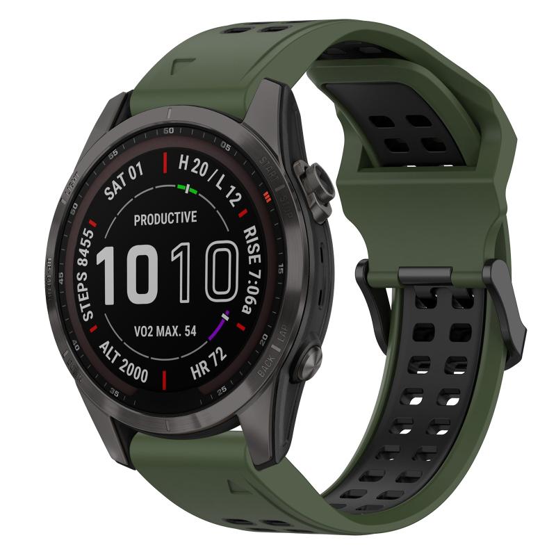 Για Garmin Fenix 7S Sapphire Solar Λουράκι Σιλικόνης 20mm με Ανοξείδωτη Αγκράφα (Στρατιωτικό Πράσινο+Μαύρο)