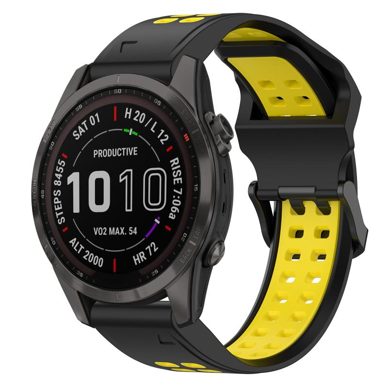 Για Garmin Fenix 7S Sapphire Solar Λουράκι Σιλικόνης 20mm με Ανοξείδωτη Αγκράφα (Μαύρο+Κίτρινο)
