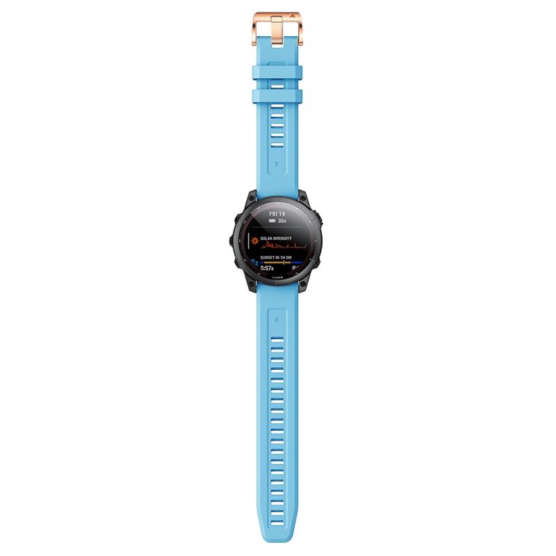 For Garmin Fenix 7S Silicone Rose Gold Buckle Watch Band(Sky Blue)